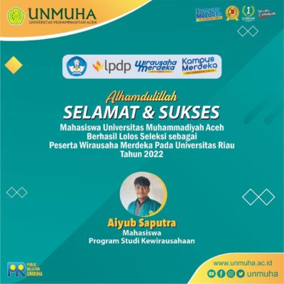Alhamdulillah selamat untuk Aiyub Saputra (Mahasiswa Program Studi Kewirausahaan) yang lolos pada program Wirausaha Merdeka ke Universitas Riau