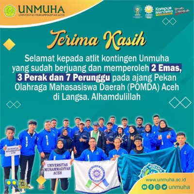 Alhamdulillah selamat kepada mahasiswa Unmuha atas perolehan Medali pada ajang Pekan Olahraga Mahasiswa Daerah (POMDA) Aceh tahun 2022 di Langsa