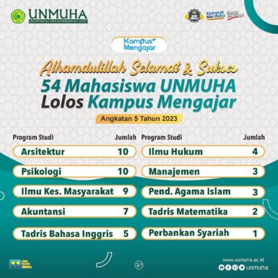 Selamat kepada mahasiswa Unmuha yang lolos kampus mengajar angkatan 5 tahun 2023