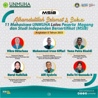 Alhamdulillah selamat untuk 11 mahasiswa Unmuha yang lolos pada program MSIB Tahun 2023