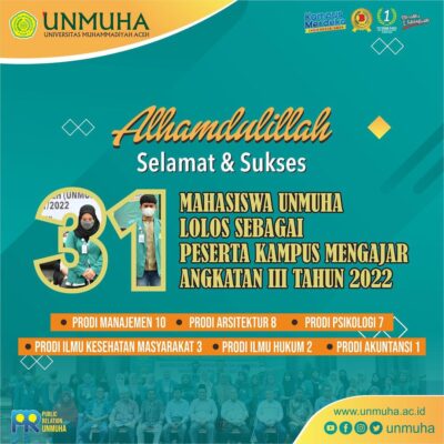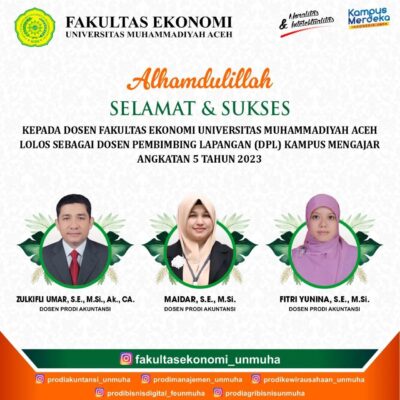 Selamat dan Sukses. kepada Dosen Fakultas Ekonomi Universitas Muhammadiyah Aceh – Lolos sebagai dosen Pembimbing Lapangan (DPL) Kampus Mengajar Angkatan 5 Tahun 2023.